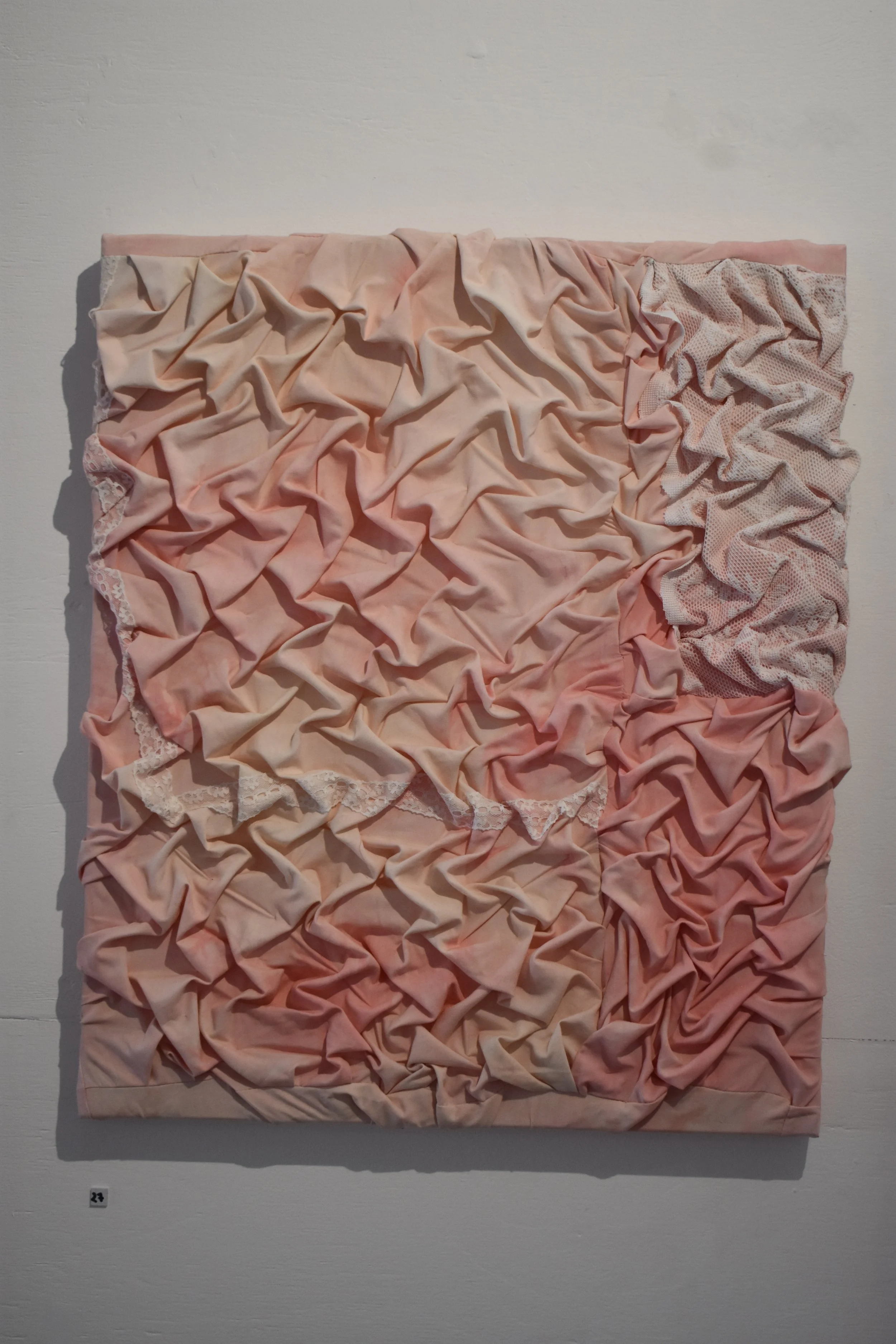 Closeness, 62 x 51 cm, pillowcases, fabric dye, lace trim, lance curtain & thread, $580 Hannah Hall