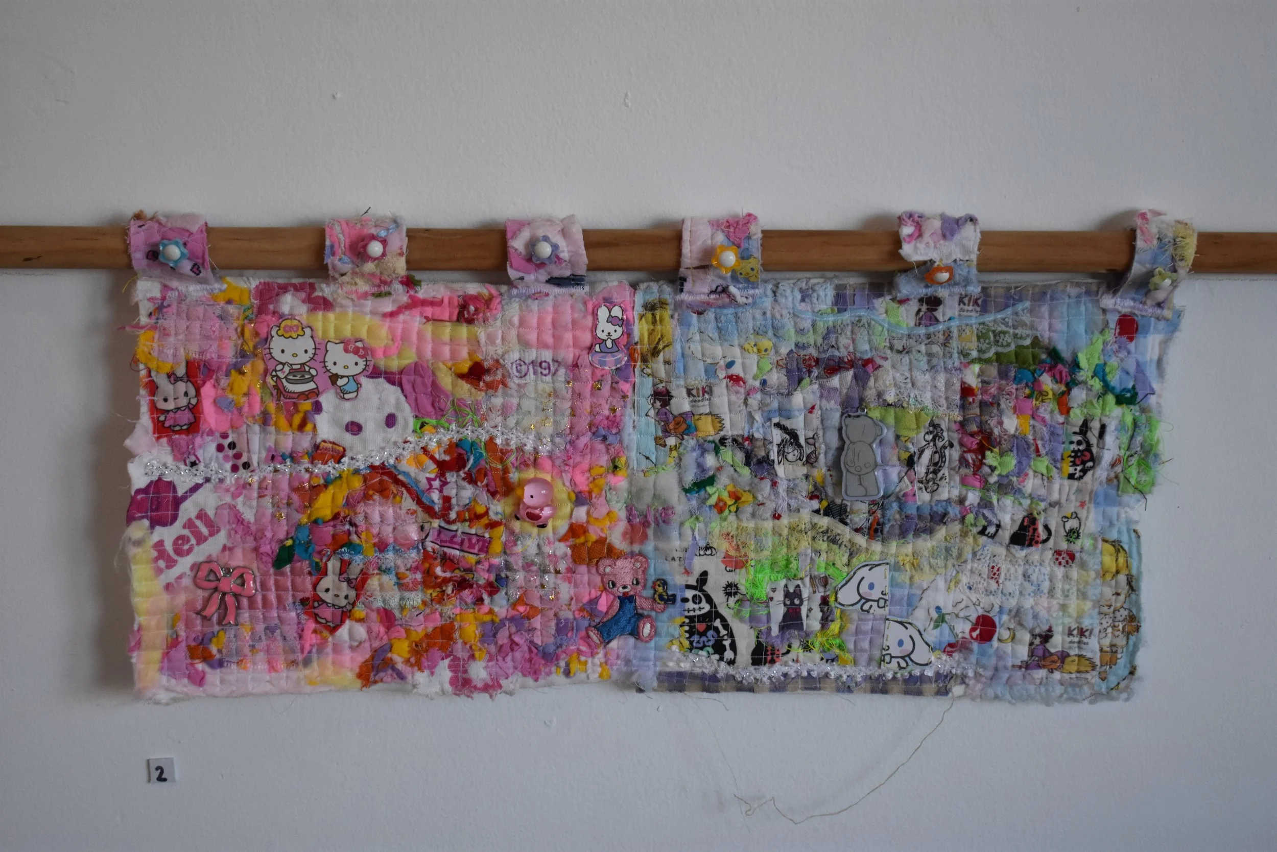 I am Always Here With You, (Day & Night version), Fabric, thread and colour pencil on paper 22x40cm, $428 each Kelly Ka Yan So